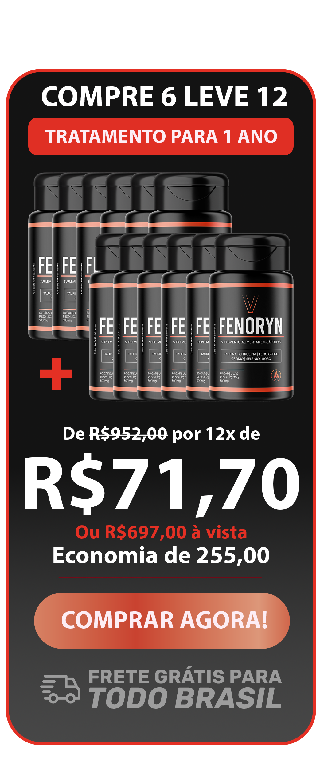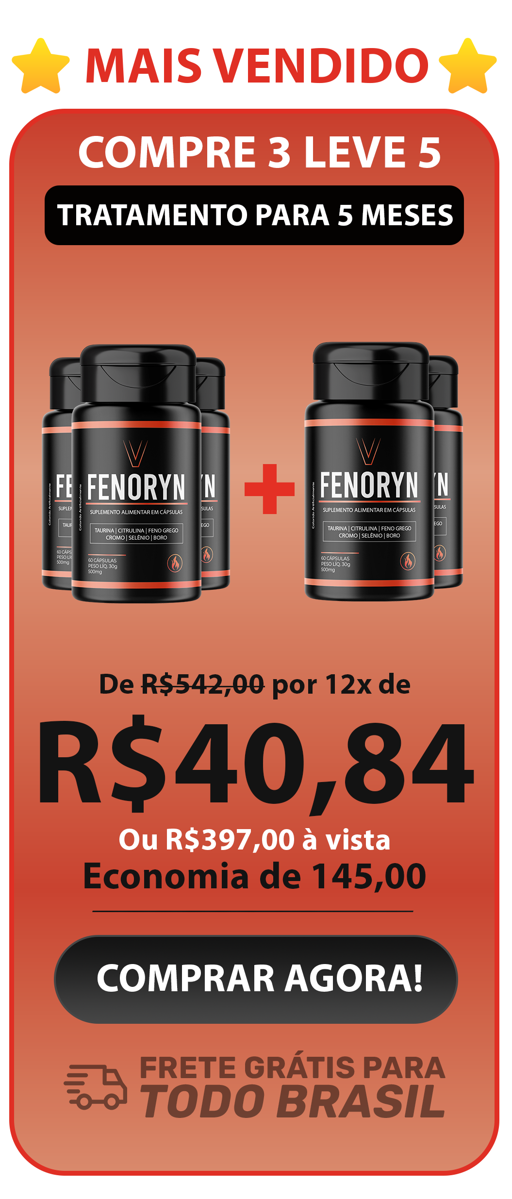 Para obter os melhores resultados, o uso contínuo de FENORYN é recomendado por no mínimo 90 dias. Por isso, criamos kits promocionais com desconto progressivo e entrega garantida